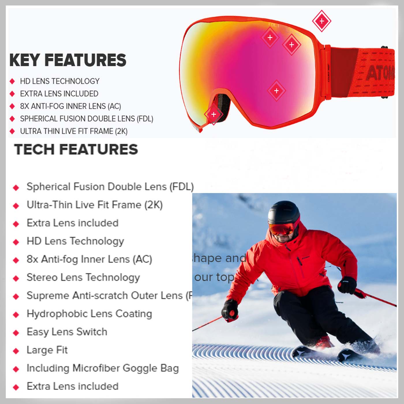 ATOMIC Atrust Mike Ski Goggles can be changed for lenses race with COUNT 360 ° HD RS