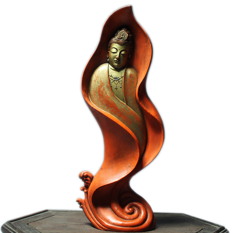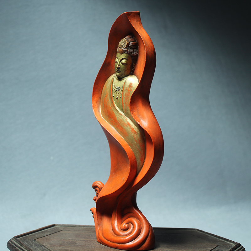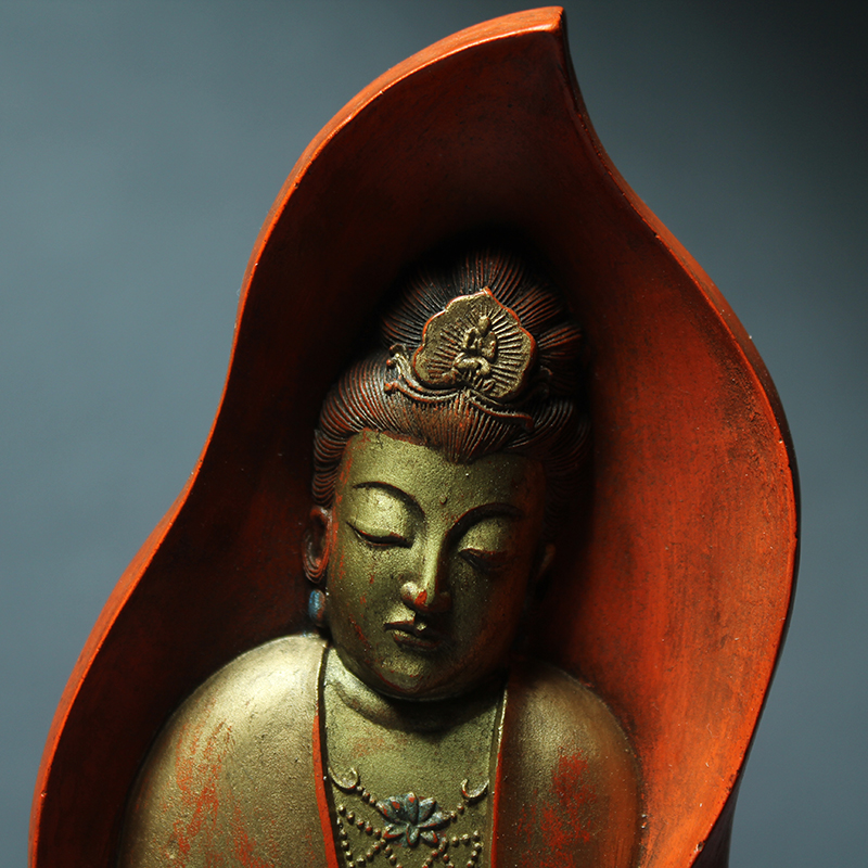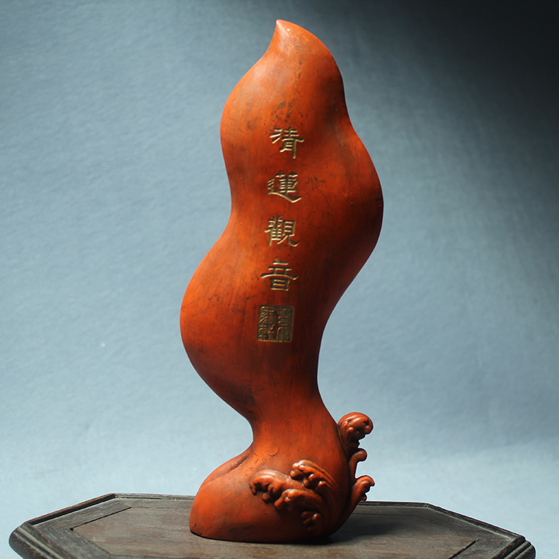 Old Tibetan vermilion old ink ingot "Green Lotus Guanyin" Town House auspicious ornament Four treasures of Wenfang Old ink inventory in the 1990s