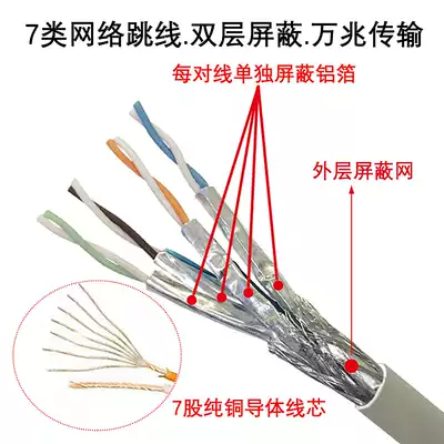 Zhexiang brothers Class 7 network cable 10 Gigabit CAT7 class dual screen shield pure copper finished product Engineering-grade computer network jumper