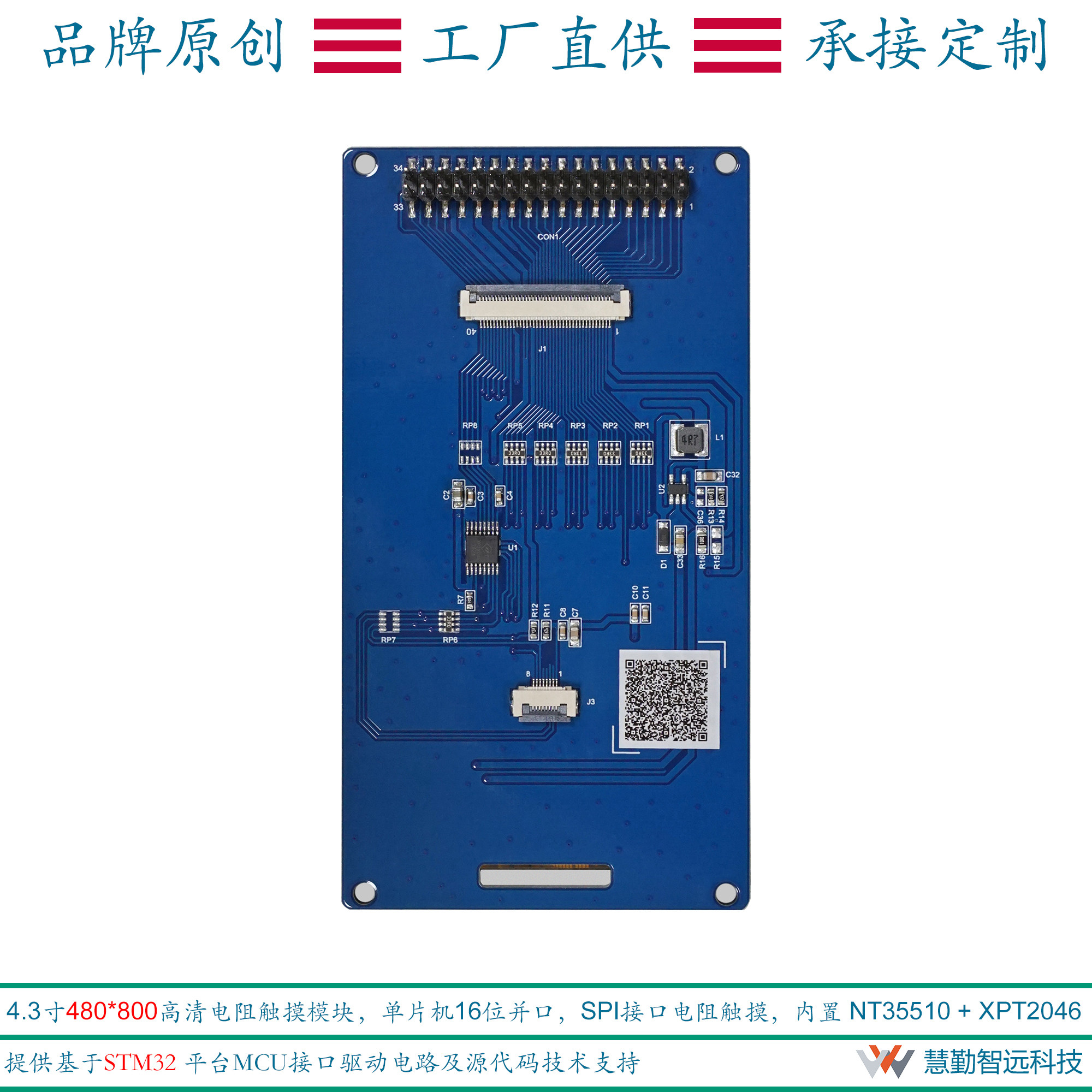 4 3 inch 480x800 HD resistive touch screen module single chip interface display SPI interface touch