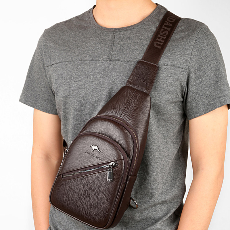 Berlin Kangaroo Men Bag Packs Single Shoulder Diagonal Satchel leather casual chest Baotou layer Bull Leather Satchel men's small hanging bag Chaos