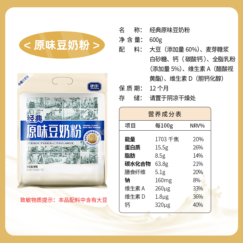 Jie's classic original soy milk powder 600g nutritional soy milk breakfast ready-to-eat independent 20 small bags of instant family pack