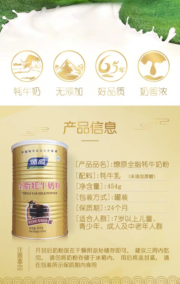 Guaranteed Liaoyuan Whole Yak Milk Powder Sugar-free Adult Middle-aged and Elderly Milk Powder 454g Two Tins Discount