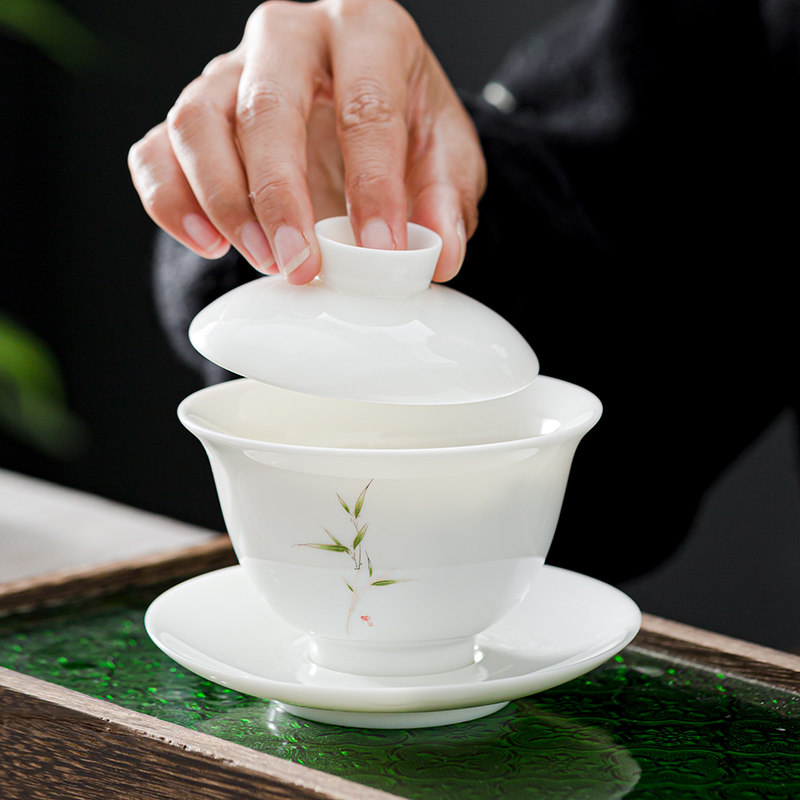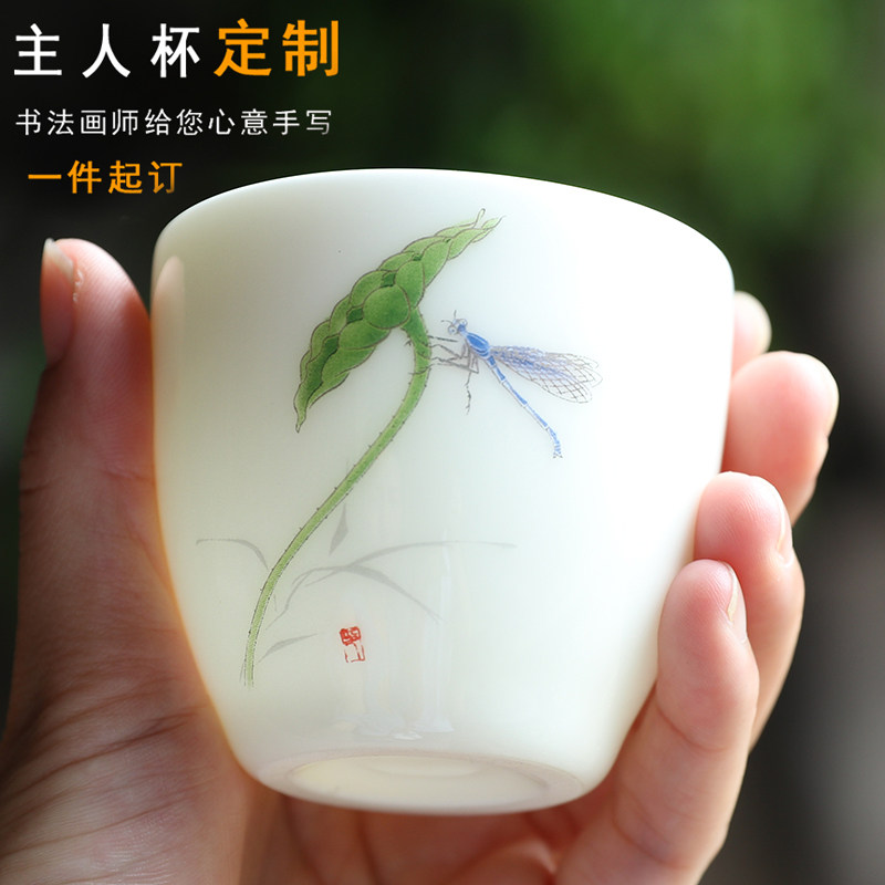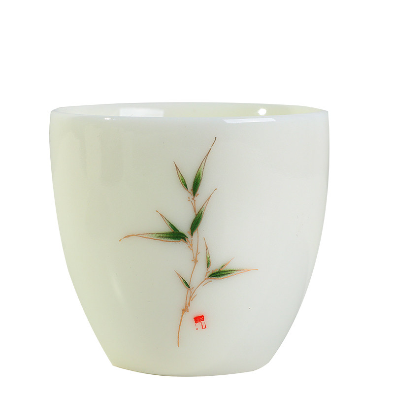 White Porcelain Tea Cup Shea Butter Jade Master's Cup Single Cup Female Kongfu Tea Bowl Large Number Ceramic Home Personal Custom Tasting Cup