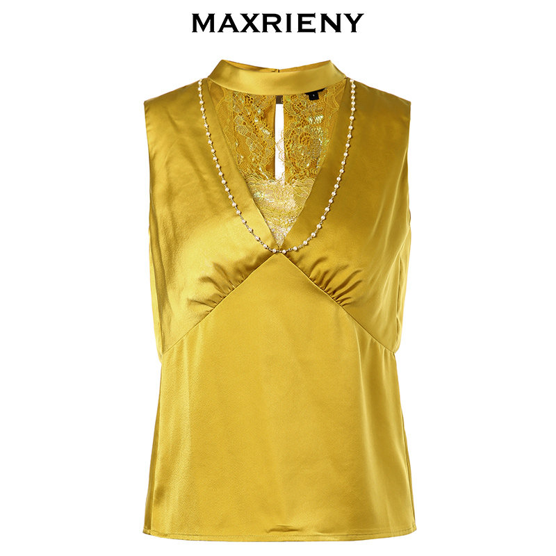 MAXRIENY2020 Summer New Fashion Temperament V Collar Snow-spinning Blouse With Sleeveless Short-Shirt Casings