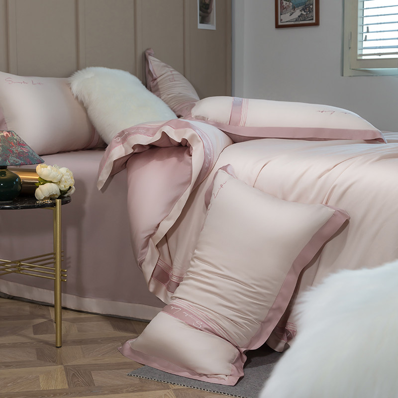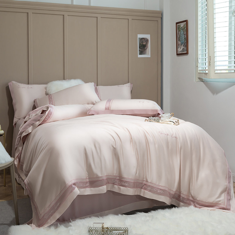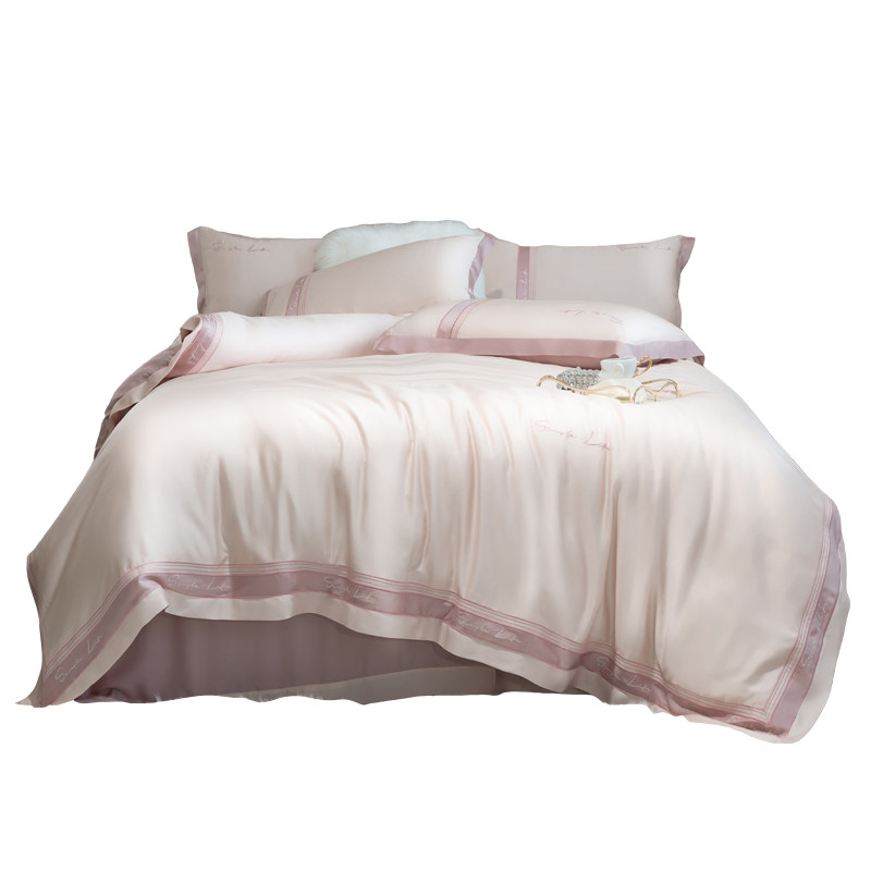Light and luxurious 80 Lanca Double Sided Tiansilk Four Sets Brief Spring Summer Embroidered Quilt Cover Silk Sliding Naked Bed Bedding