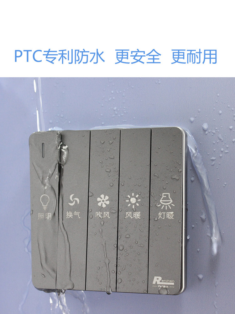 Aop Yuba universal waterproof switch five 5 turn on the light heater Yuba rocker switch panel 16A gray 5121A