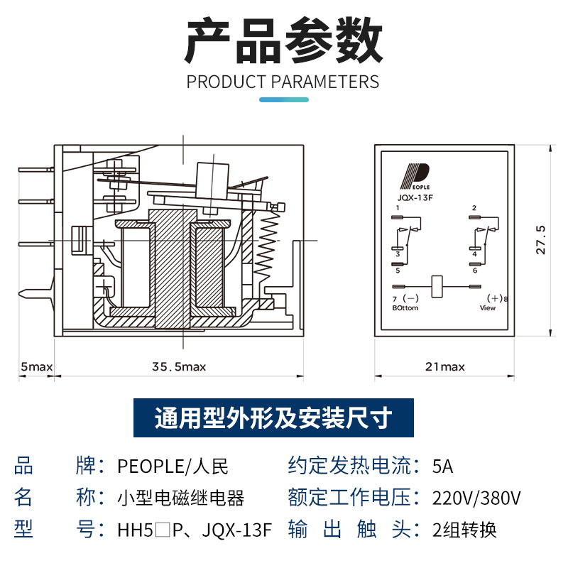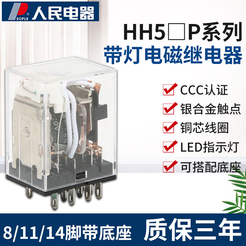 Small general-purpose relay with light type HH52P 53P 54P 2 groups 3 groups 4 groups of contacts China People's Electrical Appliances