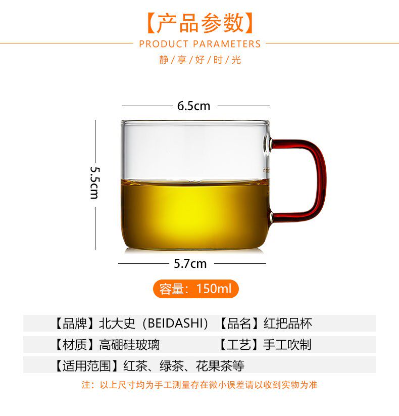 Peking University History Tea Cup Kung Fu Tea Tea Tea Tea Cup Glass Cups of Tea Cup Tea Cup Heat-resistant and transparent Small tea cup Six Packed Tea Cups