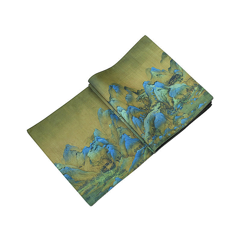 Thousands of miles of rivers and mountains printing Qingming Shanghe map large tea table cotton and linen cloth art Zen table flag Chinese ancient famous painting tea curtain