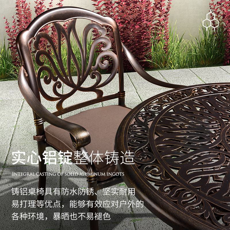 Cast aluminum table and chair balcony casual dining table and chair combined iron art villa garden outdoor barbecue table and chair