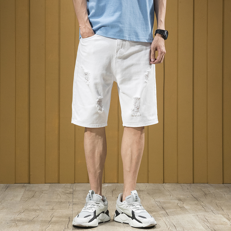 White Shorts Male loose Fat size Size Jeans Casual 100 hitch Broken Cave Horse Pants Summer Slim 50% Pants