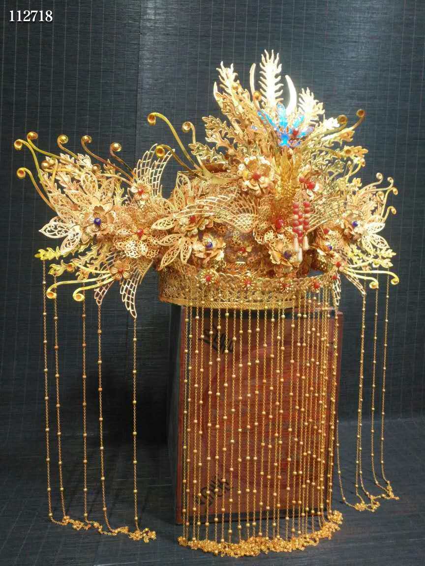 Treasured gold ware hollowed-out (wind crown) floral silk studded with ruby one top swing piece fine and brilliant 103979