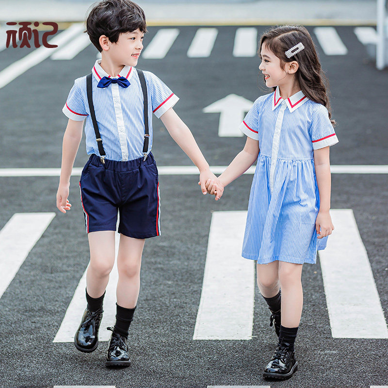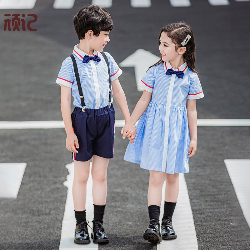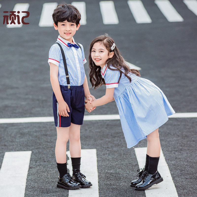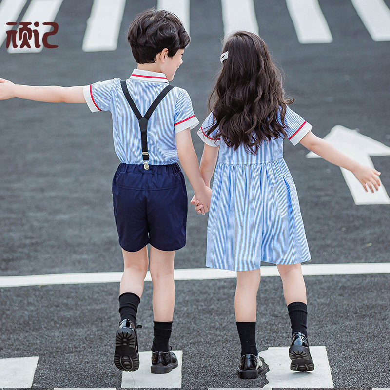 Kindergarten summer clothing children's class clothing short sleeve primary school uniform summer Korean English wind 61 chorus clothing