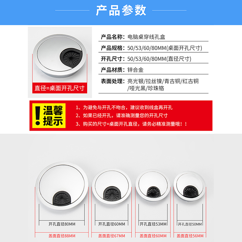 Computer desk threading hole cover plate round hole desktop drilling cover threading box decorative ring hole cover over the wiring box