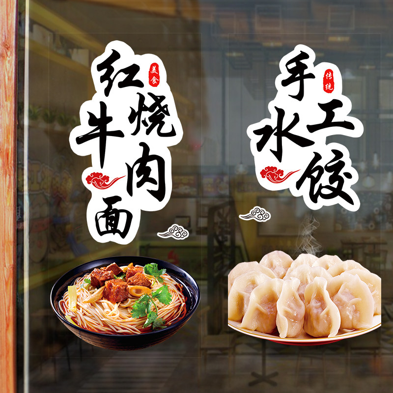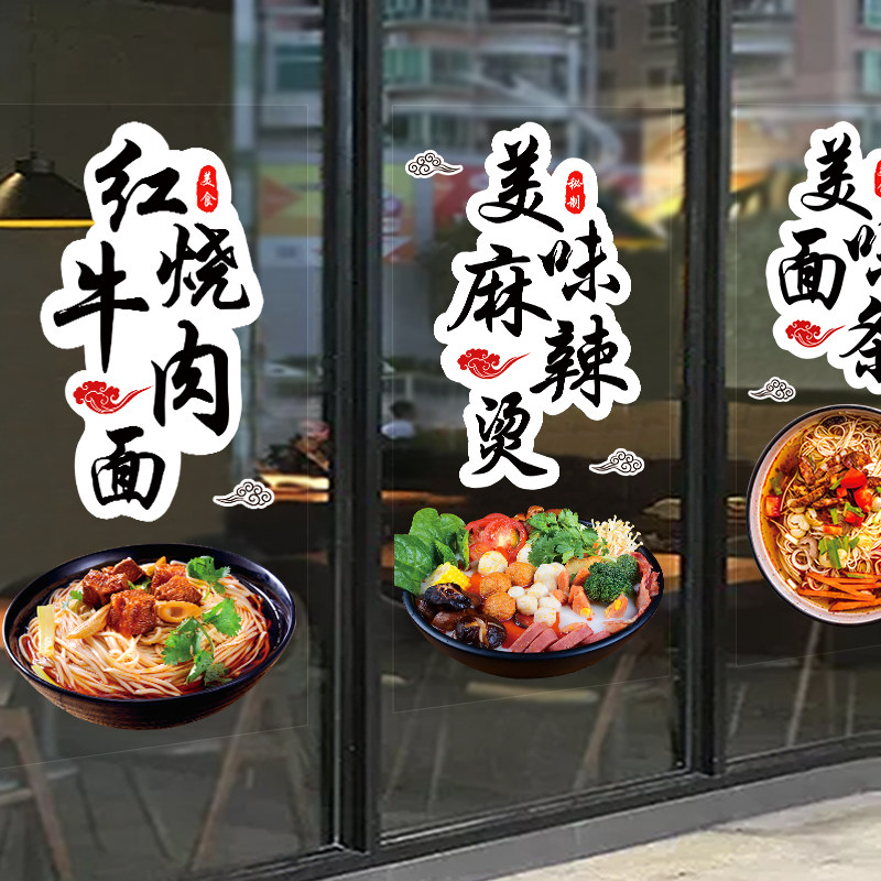 Noodle restaurant restaurant spicy hot cover pouring restaurant water dumpling restaurant creative decoration glass door sticker advertising wall stickers