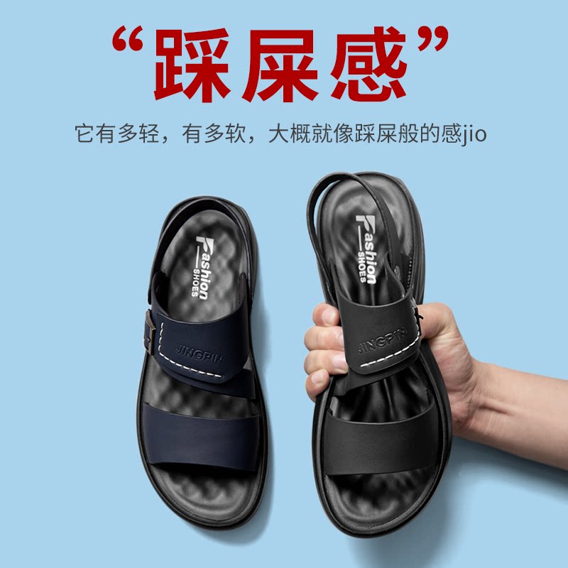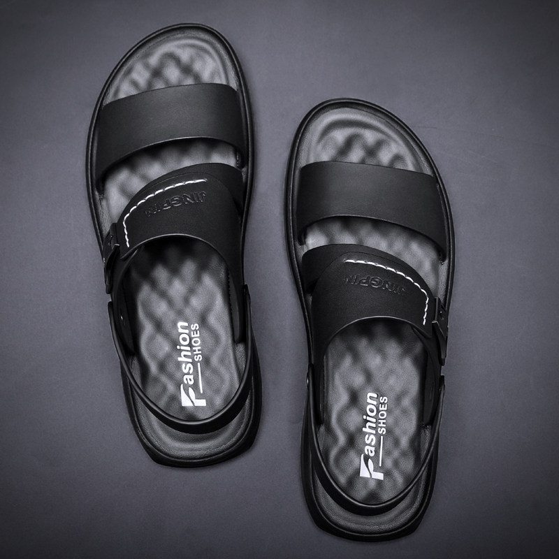 Men's sandals and slippers trendy outdoor summer wear high-end flip flops men's sandals leather beach driving slippers men
