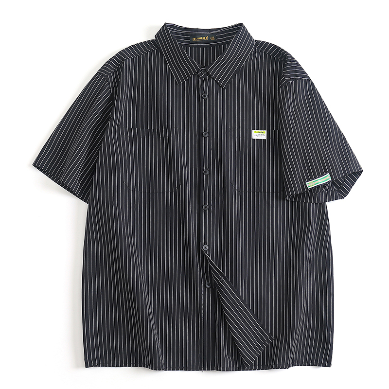 Black Stiffness Shirt Short Sleeve Men's Size Plus Fat Minimalist Pure Color Shirt Summer New Trendy Men's Clothing Chubby Jacket