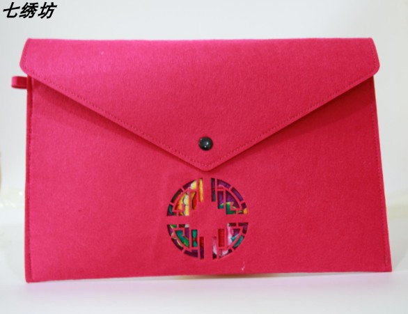 Xiangembroidery Diy Seven Embroidery Workshop Slim Embroidered Hollowed-out Window Lace Document Bag Felt Teacher's Section Embroidery Gift