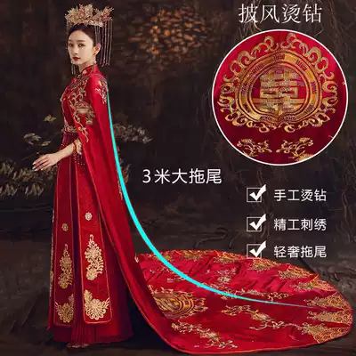 Xiuhe clothing 2021 new wedding summer Chinese bridal clothing slim Xiuhe female tail cloak Dragon Phoenix hanging wedding dress