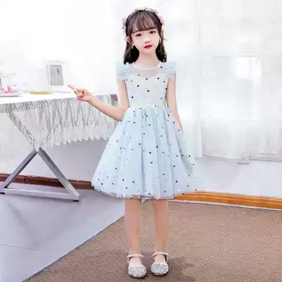 Girls ' dress summer dress 2020 new Korean version of the super ocean school puffy yarn dress children's polka dot princess skirt