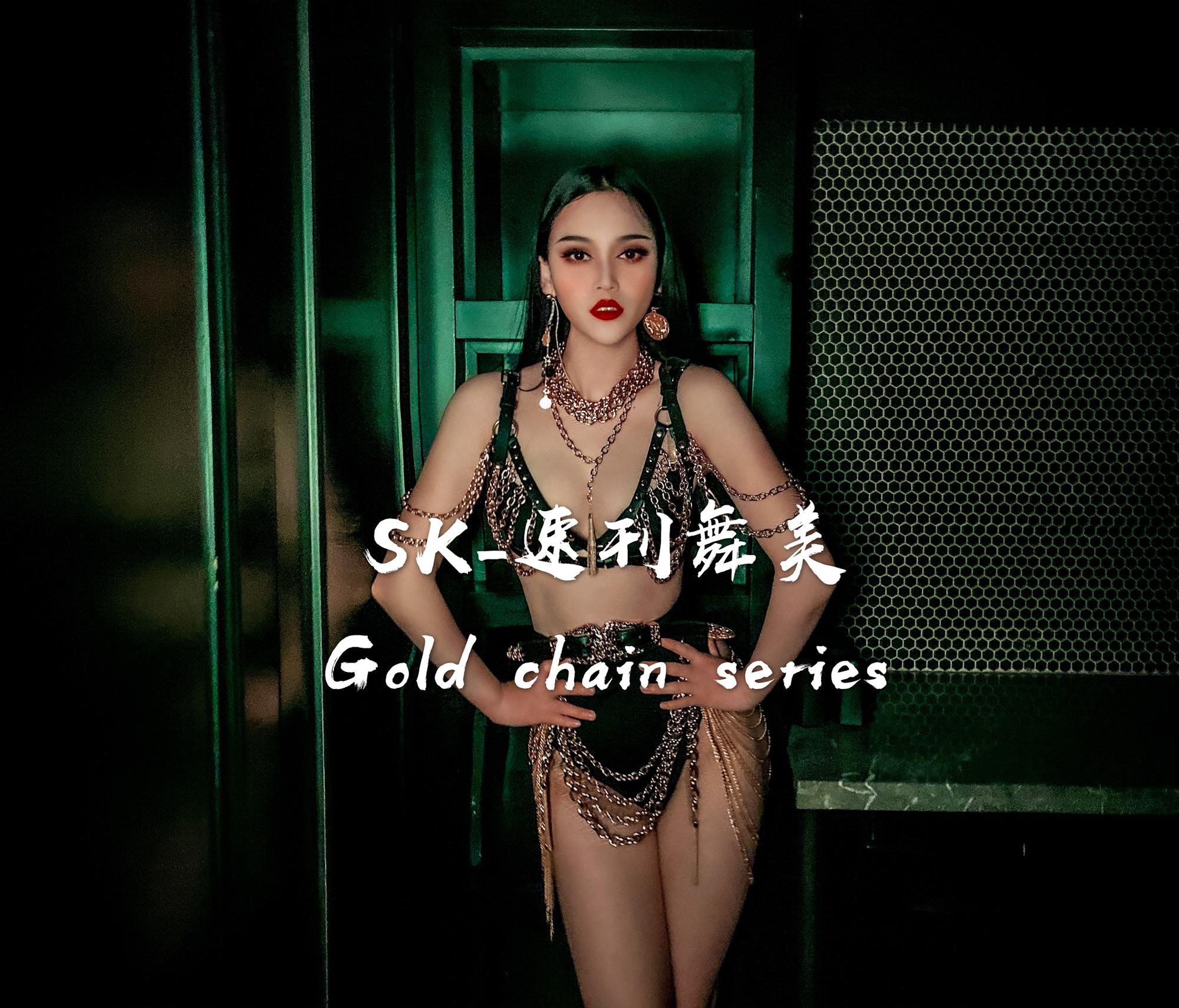 SK-Speed Mash Dance Beauty Nightclub Bar Custom Made Golden Chain Series Gogo Dance Performance Out