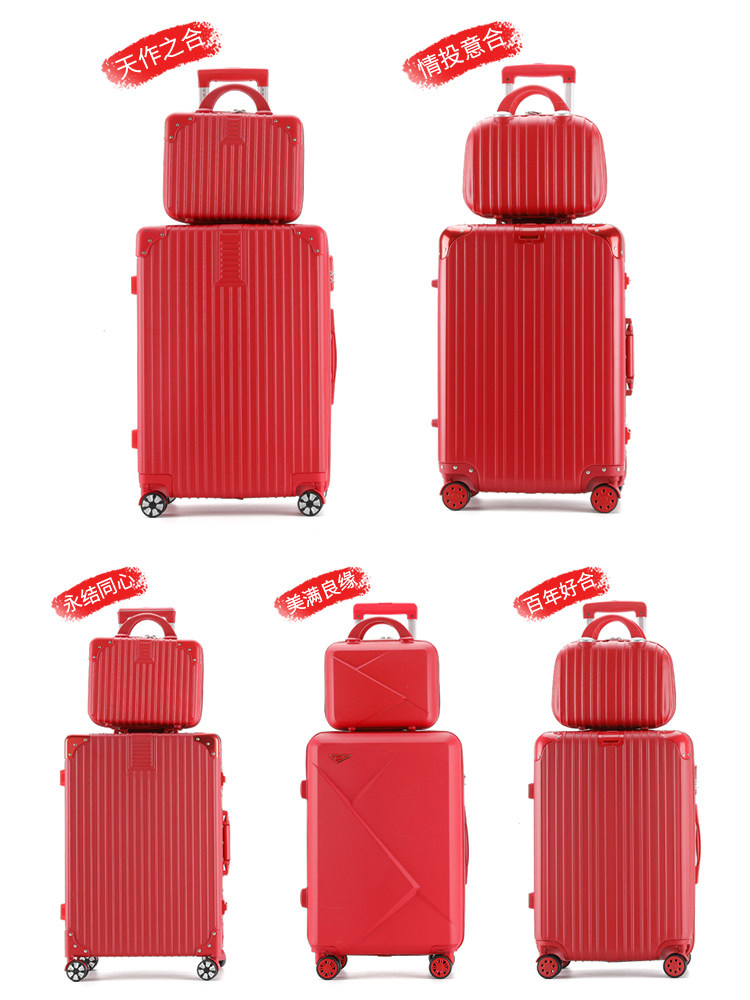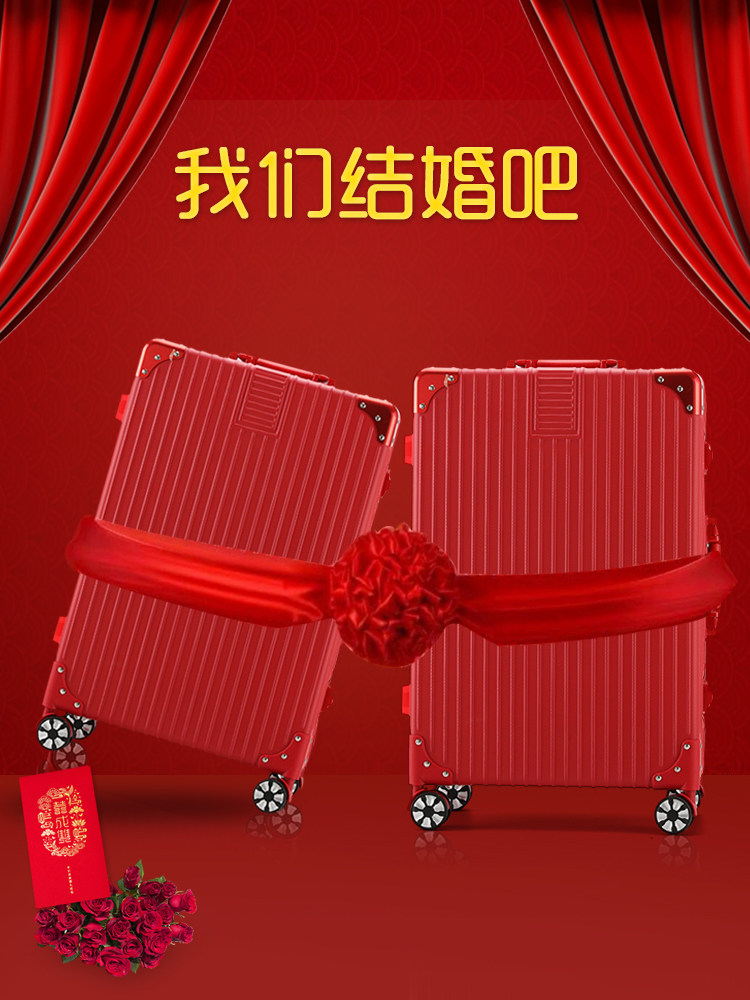 Marriage box mother box dowry red suitcase aluminum frame pull rod female password bride wedding dowry pressure box pair