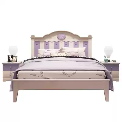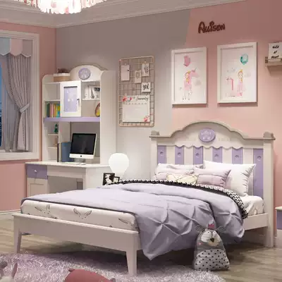 Children's bed Girl princess bed 1 35m solid wood single bed Pink purple 1 5m high box storage teen female bed