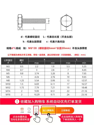 304 stainless steel Hexagon screws with elongated hexagon head bolts Hexagon screws national standard M8M10 * 16