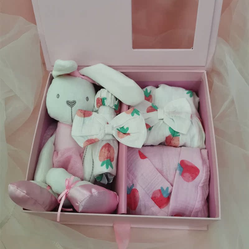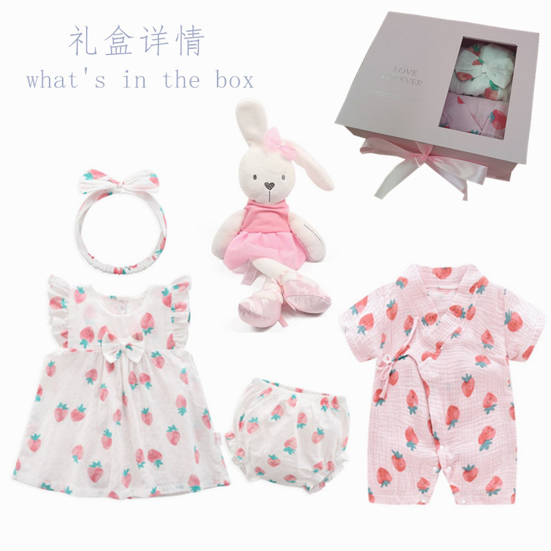 Net red female baby summer baby jumpsuit Newborn full moon 100 days one year old gift box Birthday gift clothes pure cotton