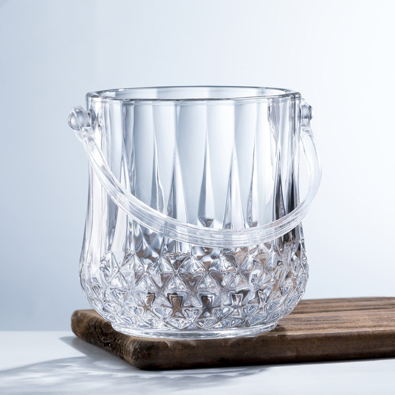 New handset household glass ice bucket crystal glass ice bucket transparent engraved ice bucket ktv bar beer bucket