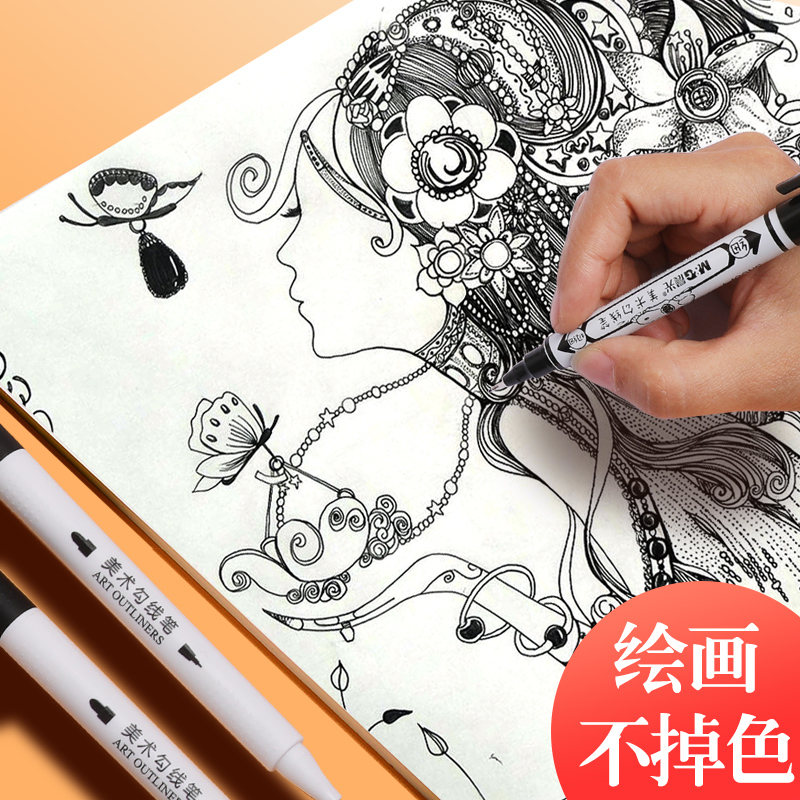 Morning Light Tie Pen Fine Art Two-headed Tie Students use children's painting with fine art color thin double-head hand painting of the country drawing line and brush waterproof scanning edge 21302