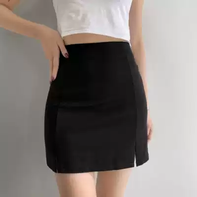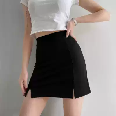 European and American Sexy A- shaped dress slim small split black skirt female autumn high waist elastic bag hip skirt