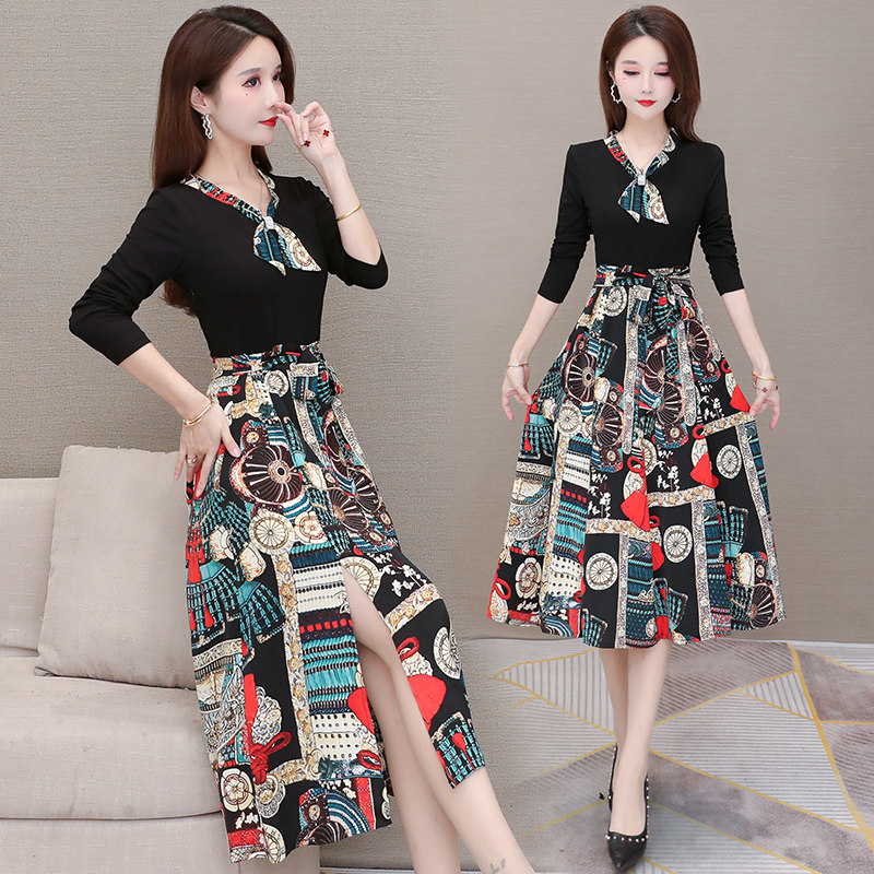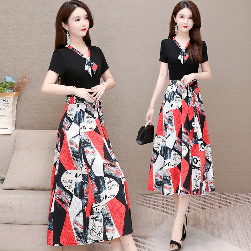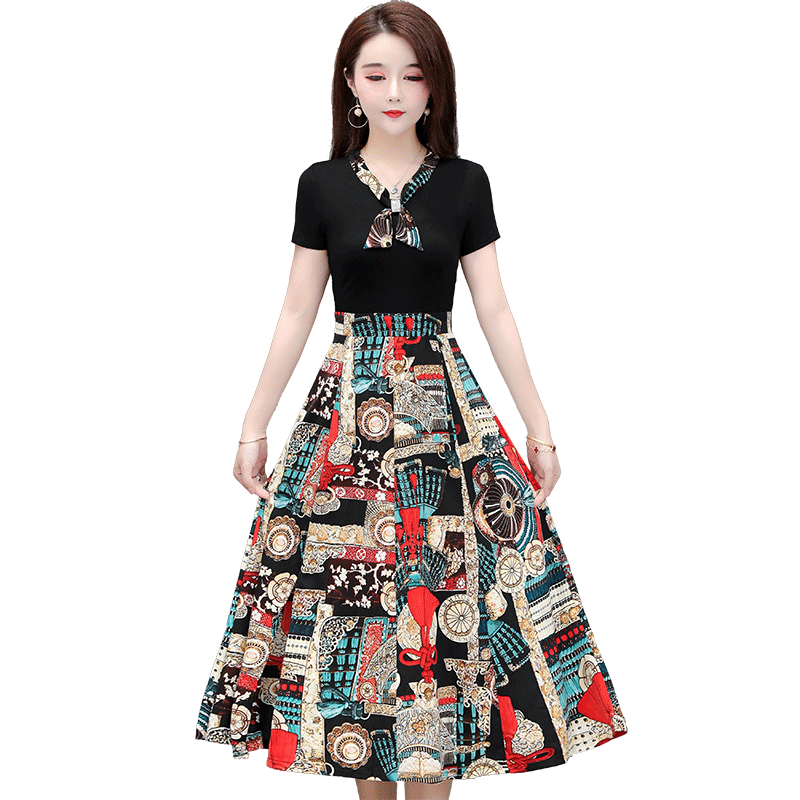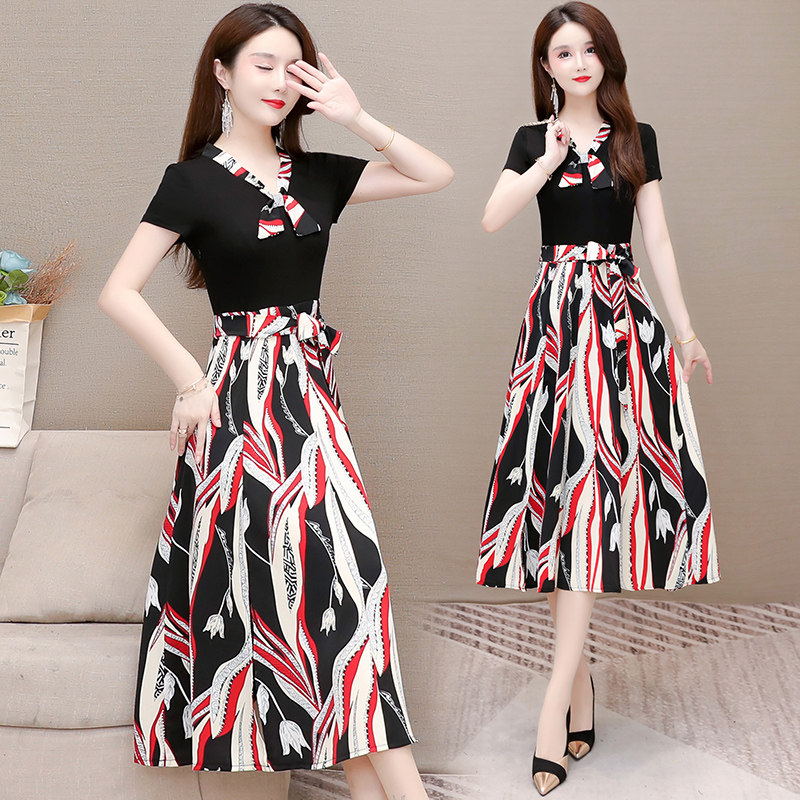 Broken Flowers Ocean Dress Women's Summer 2022 New Foreign Pie Splicing THIN FAKE TWO OVER KNEE SHORT SLEEVE A Wordskirt Tide