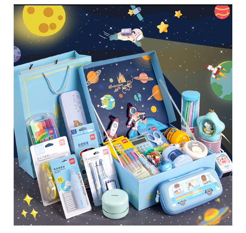 Deli Stationery Set Gift Box Opening Season Gift Package Primary School Supplies Net Red Stationery First and Second Grade Kindergarten Children's Learning Supplies Unicorn Birthday Gift Blind Box