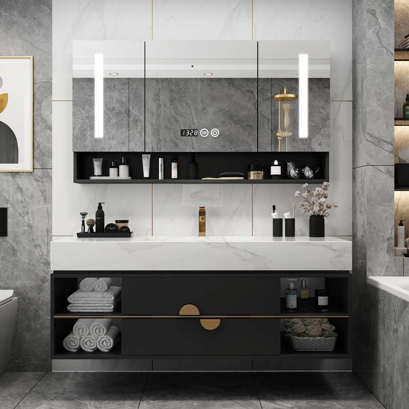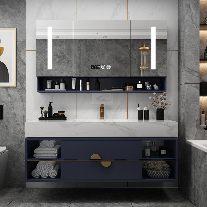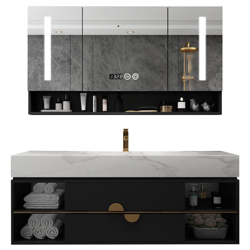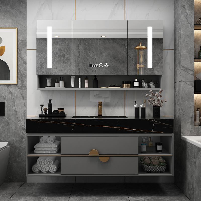 Rock Board Bath Room Cabinet Combination Modern Minima Custom Integrated Wash Face Basin Light Lavish Wash Basin Makeup Room Wash table