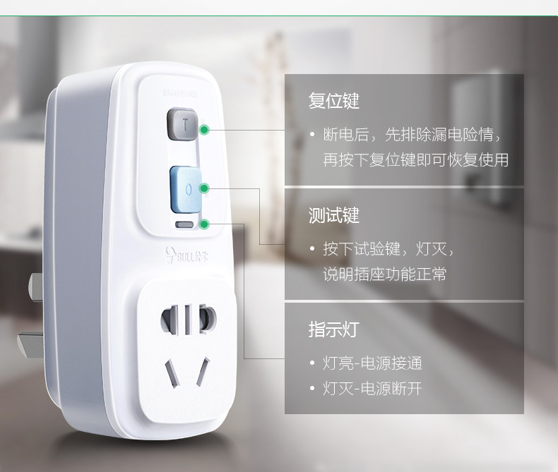 Bull Earth Leakage Protector Plug 10A 16A Electric Water Heater Air Conditioning Anti-Earth Leakage Protection Socket Automatic Power Cut