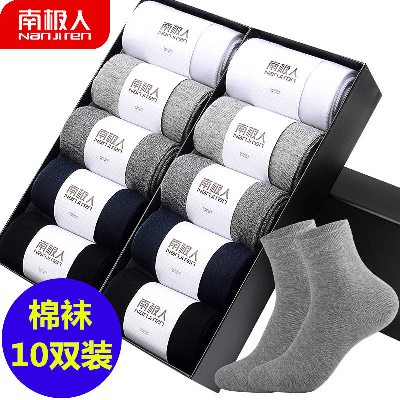 South Pole socks Men's pure cotton middle cylinder Sox spring autumn winter Deodorant Sucking sweat All cotton socks Black and white Winter Socks Length Socks