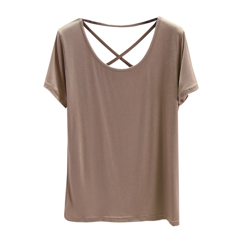 Beauty back T-shirt female summer slim loot short sleeve modell hit undershirt back hollowed-out sexy open-back pure blouse