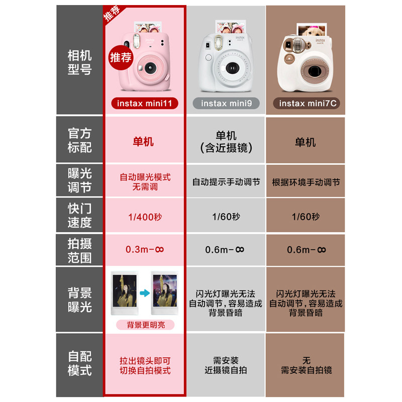 Fuji Polaroid camera mini11 comes with beauty student 7 9 upgraded retro package with photo paper