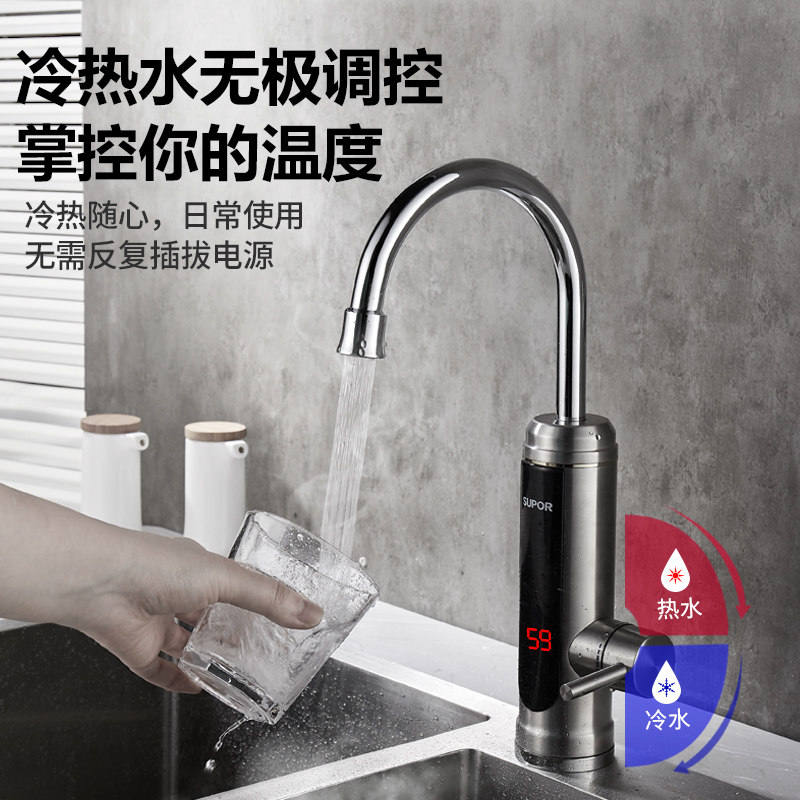 Supoir stainless steel electric hot water faucet quick heat instant heating kitchen Bao over hydrothermal domestic electric water heater
