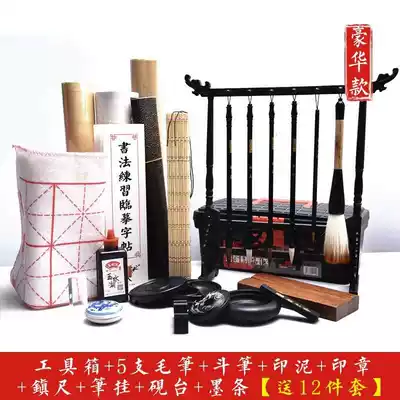 Wenfang four treasures boutique set pen, ink, paper, inkstone adult calligraphy supplies gift box Wolf and hair pen, inkstone, Taizhen ruler