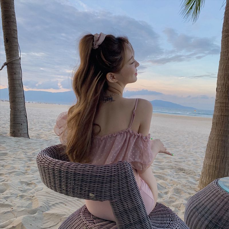 Super Fairy Swimsuit Woman South Korea Fashion Fairy fan Shoulder Lace Sexy Little Breasts to Reveal Back to Lean Bubble Hot Springs