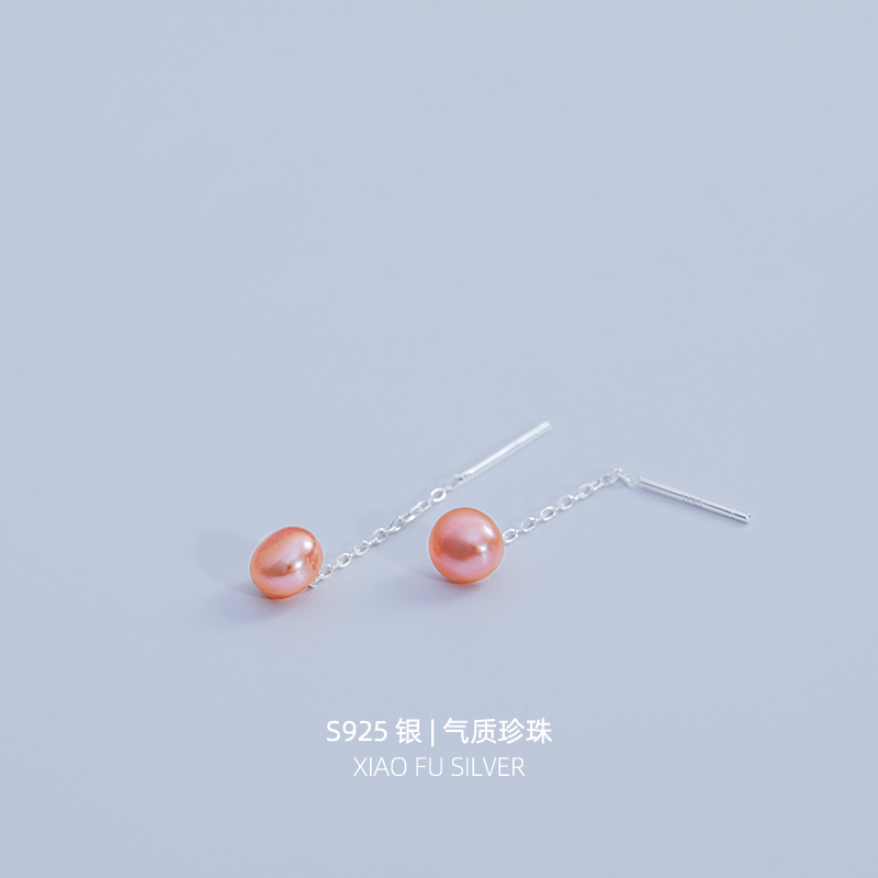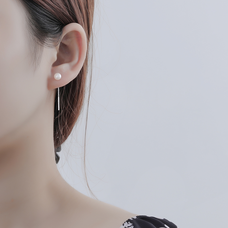 Through Body s925 Pure Silver Freshwater Pearl Earrings Earrings Female Korea Temperament Brief Student Personality Ear Necklaces