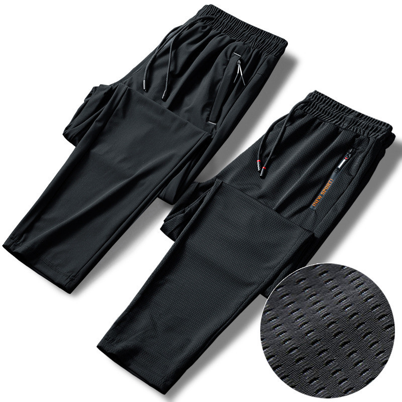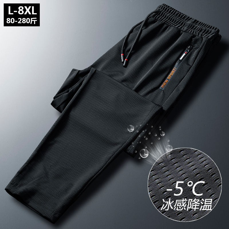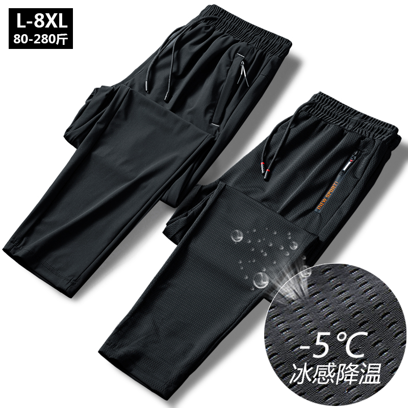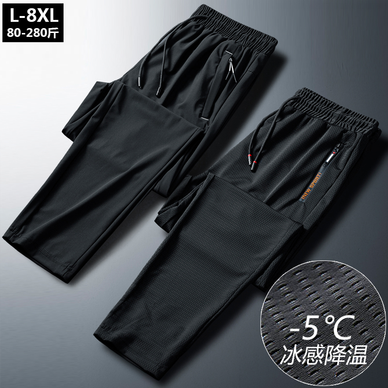 Ice silk pants Men's summer ultra-thin high stretch quick-drying silky loose mesh air conditioning casual sports straight trousers
