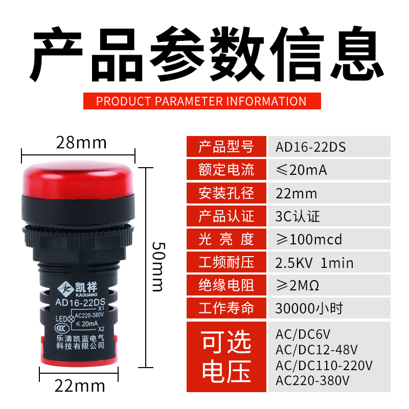 LED power indicator AD16-22D S signal light 22DS distribution box 22mm universal 220v24v