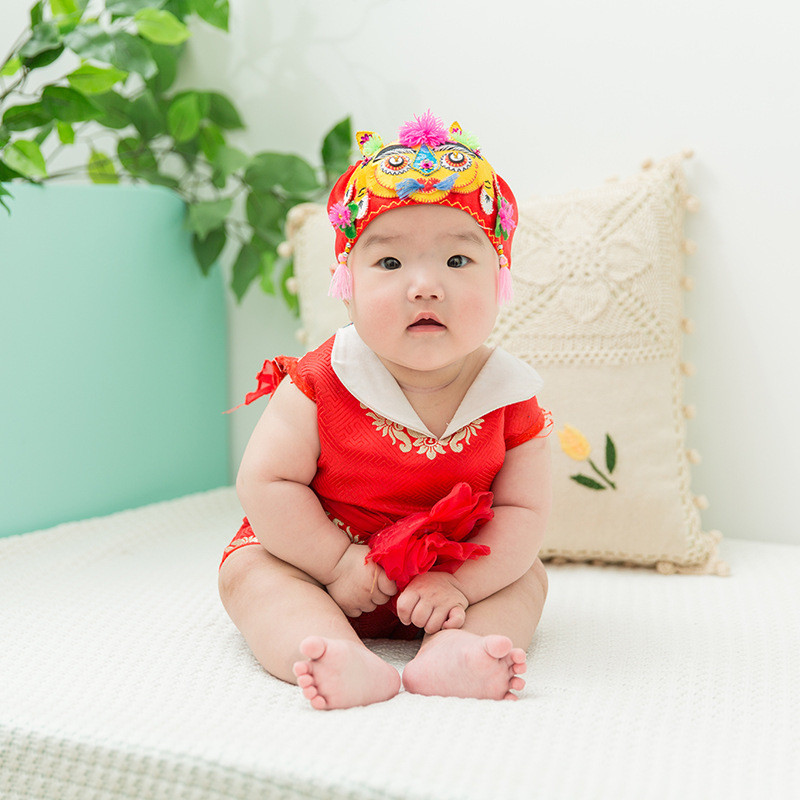 Baby handmade tiger head hat summer baby tiger hat newborn fetal hat empty top halogen door hat full moon hundred years old