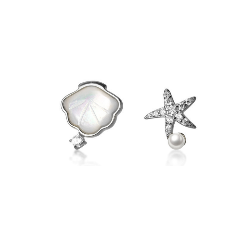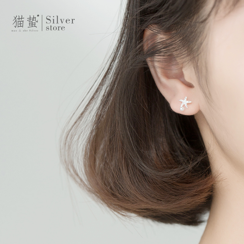 Cat sting S925 sterling silver starfish shell shell stud earrings Korean version of the temperament simple and versatile student hypoallergenic earrings