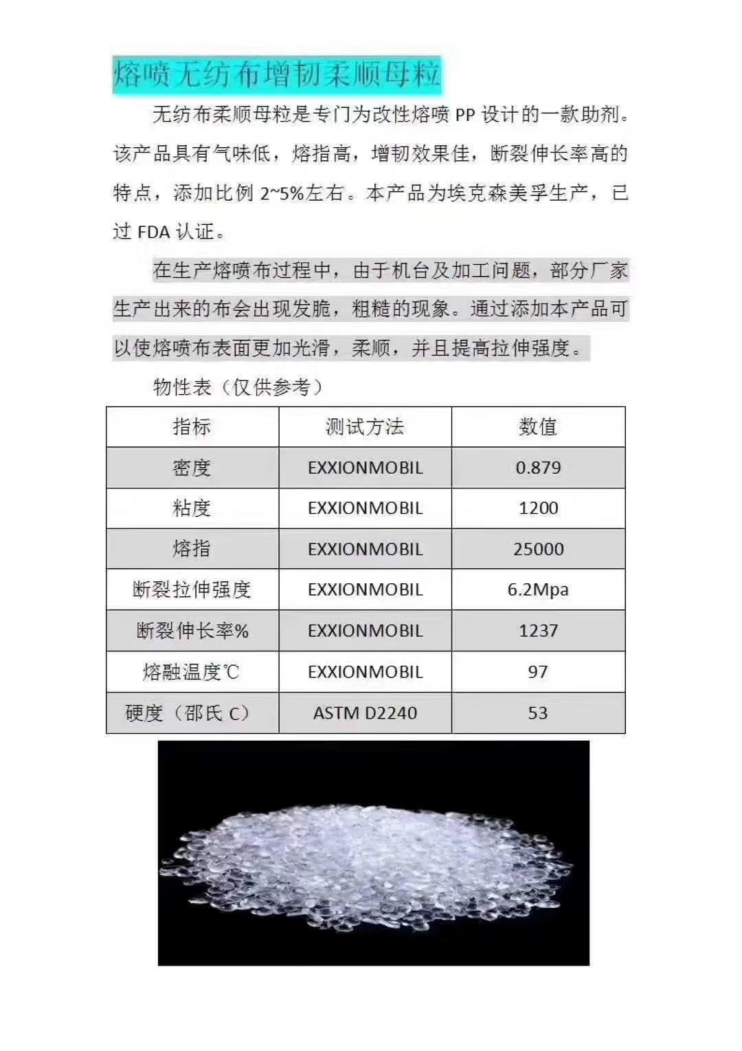 PP melt spray unwoven fabric softly soft mother grain lava spray softness and toughener Toughening Mother Grain added 2-5 %