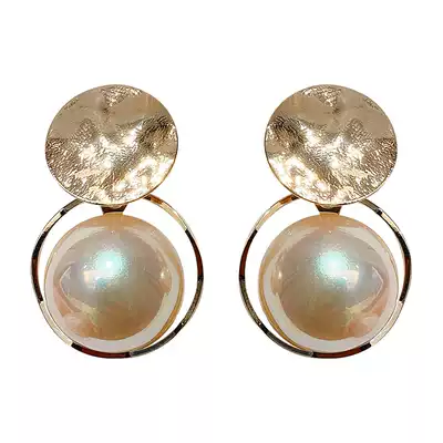 South Korea light luxury advanced sense big pearl earrings metal earrings 925 silver needle temperament atmospheric earrings autumn and winter New